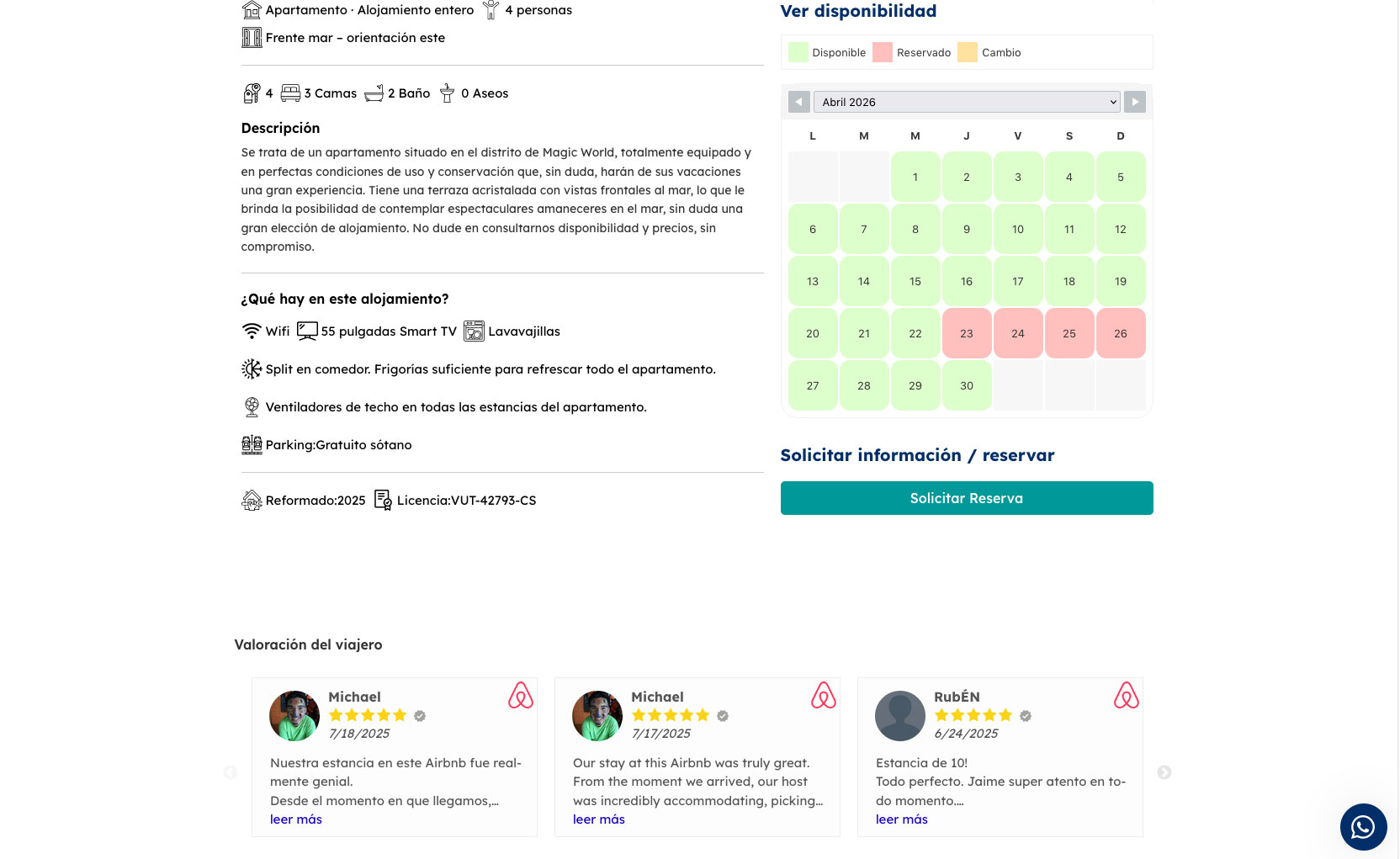 A nivel técnico, se ha desarrollado una web optimizada para SEO, mejorando su posicionamiento en buscadores y facilitando la captación de clientes interesados en alquileres vacacionales. Además, se ha trabajado una adaptación responsive completa, garantizando una experiencia fluida desde cualquier dispositivo, especialmente móvil, donde se concentra gran parte del tráfico en este tipo de proyectos.