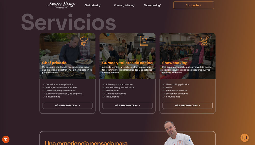 ¡Bienvenido a uno de nuestros proyectos de diseño web! En esta ocasión, te presentamos el desarrollo realizado para Javier Sanz Chef Privado, un servicio gastronómico exclusivo enfocado en experiencias culinarias personalizadas.